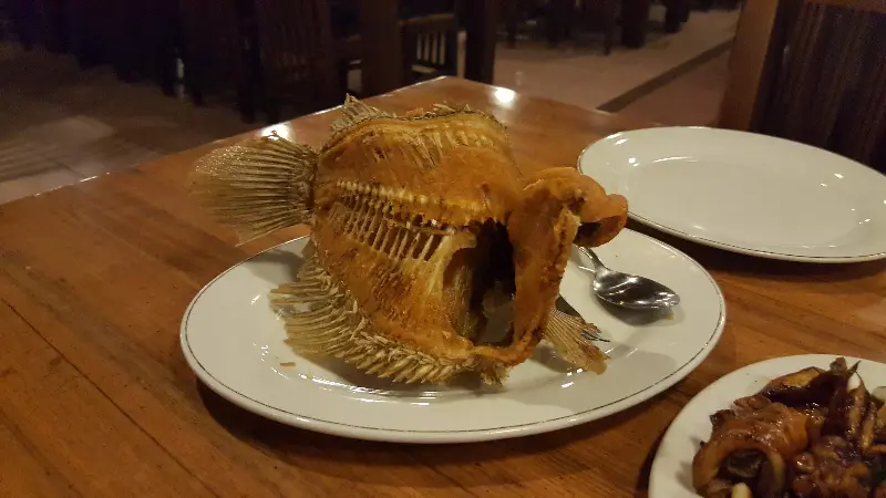 ‘Pondok Laguna’에서 꼭 먹어봐야 할 메뉴 중 하나는 바로 구라메 튀김입니다. 커다란 구라메를 통째로 튀겨낸 모습은 그야말로 압도적인 비주얼을 자랑합니다. 겉은 바삭하고 속은 촉촉한 구라메 튀김은 담백하면서도 고소한 맛이 일품입니다. 특히, 함께 제공되는 매콤한 소스에 찍어 먹으면 느끼함 없이 더욱 맛있게 즐길 수 있습니다.