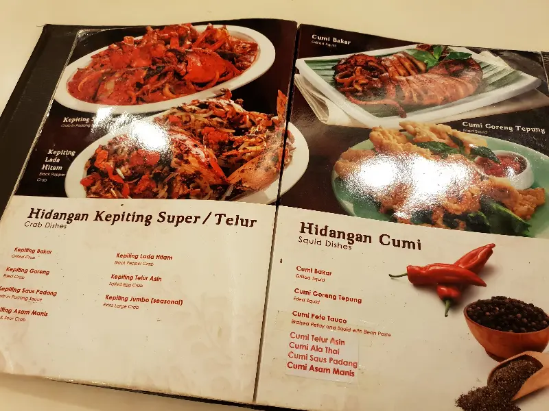 에어컨이 없는 1층은 다소 더울 수 있지만, 2층에는 에어컨이 완비되어 있어 쾌적하게 식사를 즐길 수 있습니다. 저는 2층 창가 자리에 앉아 바깥 풍경을 감상하며 메뉴를 골랐습니다. 메뉴판에는 다양한 인도네시아 음식들이 가득했는데, 그림과 함께 설명이 덧붙여져 있어 메뉴 선택에 어려움은 없었습니다.
