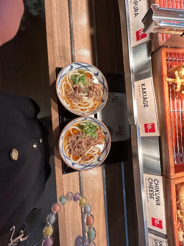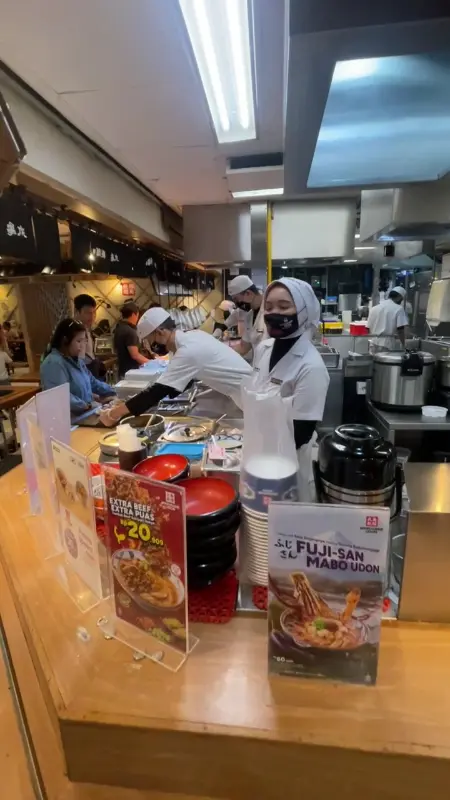 마루가메 우동은 맛뿐만 아니라 서비스도 훌륭했습니다. 직원들은 항상 친절하고 밝은 미소로 손님들을 맞이했으며, 주문을 받거나 음식을 서빙할 때도 꼼꼼하게 챙겨주는 모습이 인상적이었습니다. 특히 계산대 직원인 마스 샤리프와 마스 찬드라 씨는 정말 친절했습니다. 두 분은 헌신적이고 성실하게 일하며 손님들에게 최상의 서비스를 제공하기 위해 노력하는 모습이었습니다.