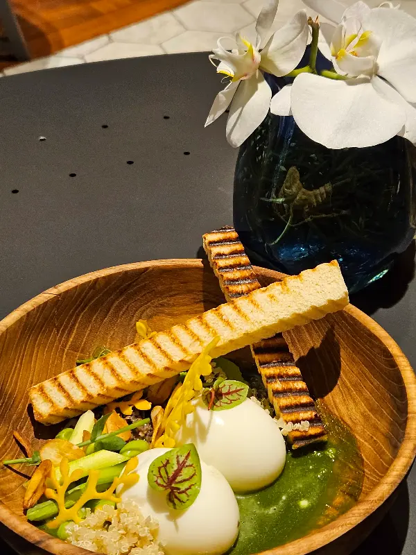 주말 오후, 블루 테라스에서 브런치 패키지를 즐기는 것은 어떨까요? 합리적인 가격으로 다양한 메뉴를 맛볼 수 있는 브런치 패키지는 특히 인기가 높습니다. 콜드 플래터, 페이스트리, 주스, 메인 요리, 그리고 리코타 팬케이크까지, 풍성한 구성은 만족스러운 식사를 보장합니다. Image 5에서 볼 수 있듯이, 아름다운 플레이팅은 식사의 즐거움을 더하고, 폭신하고 부드러운 리코타 팬케이크는 달콤한 마무리를 선사합니다.