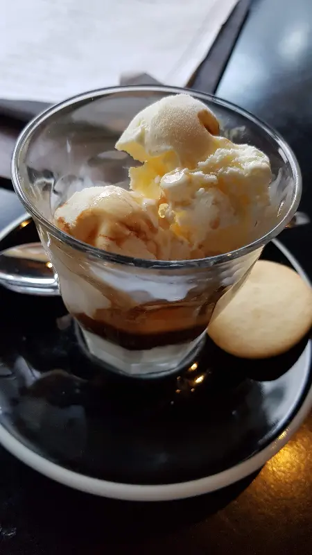 식사를 마치고 디저트로 아포가토를 주문했다. 작은 잔에 담긴 진한 에스프레소와 바닐라 아이스크림 두 스쿱이 함께 제공된다. 에스프레소를 아이스크림 위에 천천히 부어 먹는 순간, 쌉쌀한 커피와 달콤한 아이스크림이 환상적인 조화를 이룬다. 입안 가득 퍼지는 달콤함은 하루의 피로를 잊게 해준다.