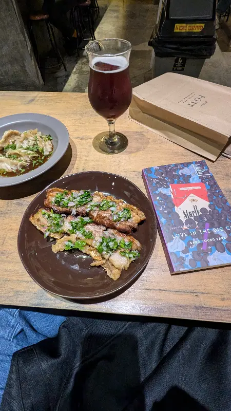 맥주와 함께 곁들일 메뉴로 바쿠미 (크리스피 돼지고기 국물 없는 국수)를 주문했다. 매콤한 페퍼와 마늘 향이 코를 자극했다. 한 입 맛보니, 짭짤하면서도 고소한 맛이 입안 가득 퍼져 나갔다. 갓 튀겨낸 돼지고기의 바삭함과 쫄깃한 면발의 조화는 환상적이었다. 맥주와 함께 먹으니, 그 맛이 더욱 배가 되는 듯했다.
