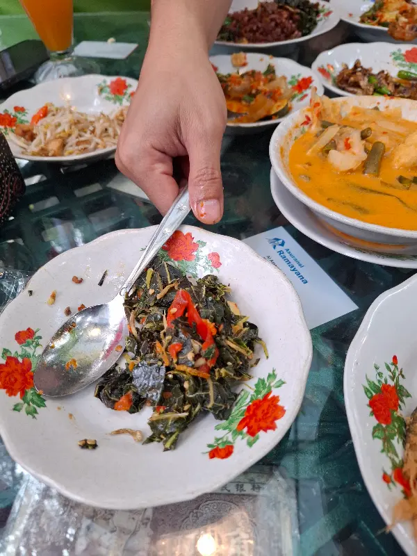 자리에 앉자마자 직원분이 전통 허브 음료를 가져다주셨다. 메뉴를 펼쳐보니, 자바 요리의 향연이 펼쳐졌다. 메뉴는 다양했고, 원하는 양을 선택하면 즉석에서 데워져 나왔다. 1인분부터 3인분까지 다양한 양이 준비되어 있어 혼자 온 손님부터 단체 손님까지 모두 만족할 수 있을 것 같았다. 리뷰에 따르면 코로나19 이후로는 직접 음식을 가져갈 수 없고, 웨이터가 주문한 메뉴를 가져다준다고 한다.