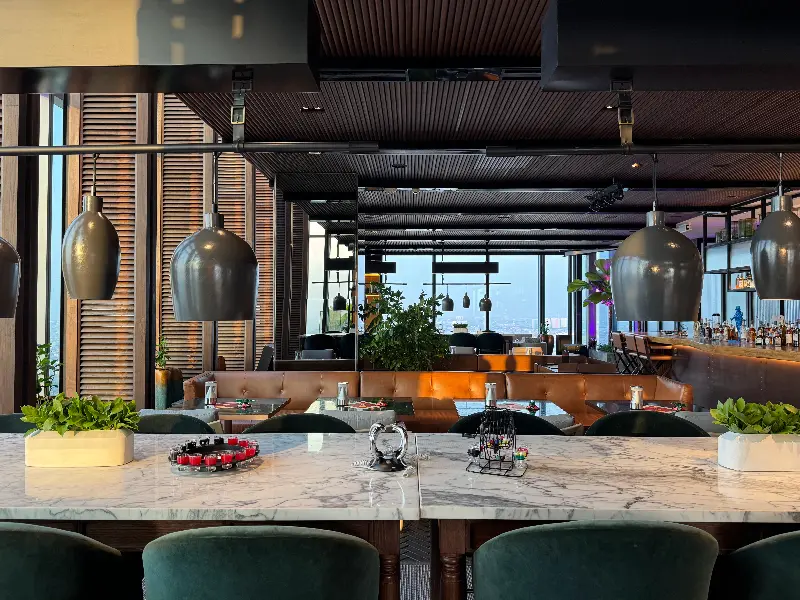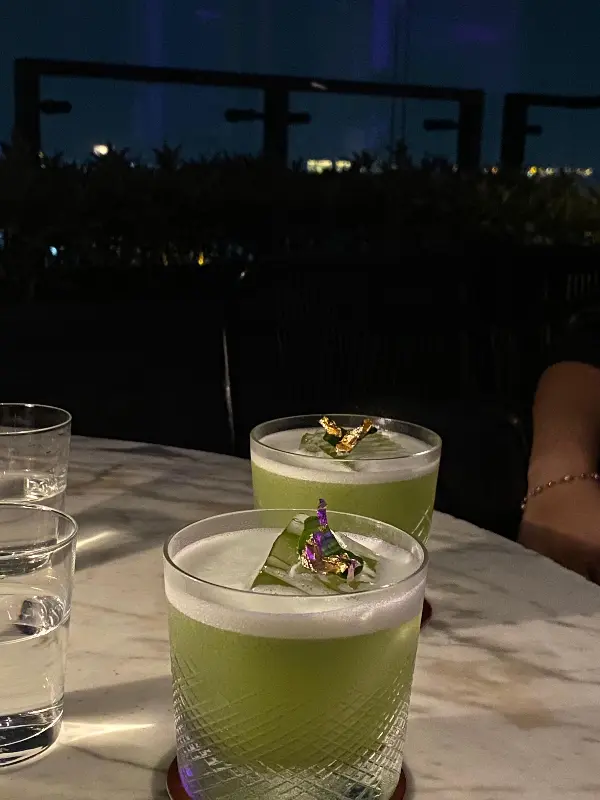 호텔 로비에서 엘리베이터를 타고 꼭대기 층에 도착하자, 은은하면서도 세련된 분위기가 감도는 공간이 눈 앞에 펼쳐졌습니다. 첫인상은 마치 도쿄의 루프탑 바에 와 있는 듯한 느낌이었어요. 고급스러운 디자인과 따뜻한 조명이 어우러져 편안하면서도 특별한 분위기를 자아냈습니다. 바에 들어서자 직원분들이 친절하게 맞이해주셨고, 예약 없이 방문했음에도 불구하고 다행히 창가 자리에 앉을 수 있었습니다. 금요일 밤이었지만, 생각보다 사람이 많지 않아 조용하고 여유롭게 대화를 즐길 수 있다는 점이 마음에 들었습니다.