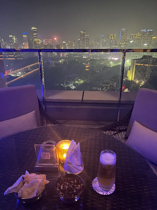 K22 Bar의 가장 큰 매력은 단연 숨 막힐 듯 아름다운 야경이다. 자리에 앉자마자 눈앞에 펼쳐지는 자카르타의 스카이라인은 그야말로 장관이었다. 반짝이는 도시의 불빛들은 마치 하늘에서 쏟아지는 별처럼 아름다웠고, 그 빛들이 만들어내는 몽환적인 분위기는 로맨틱한 밤을 더욱 특별하게 만들어 주었다.