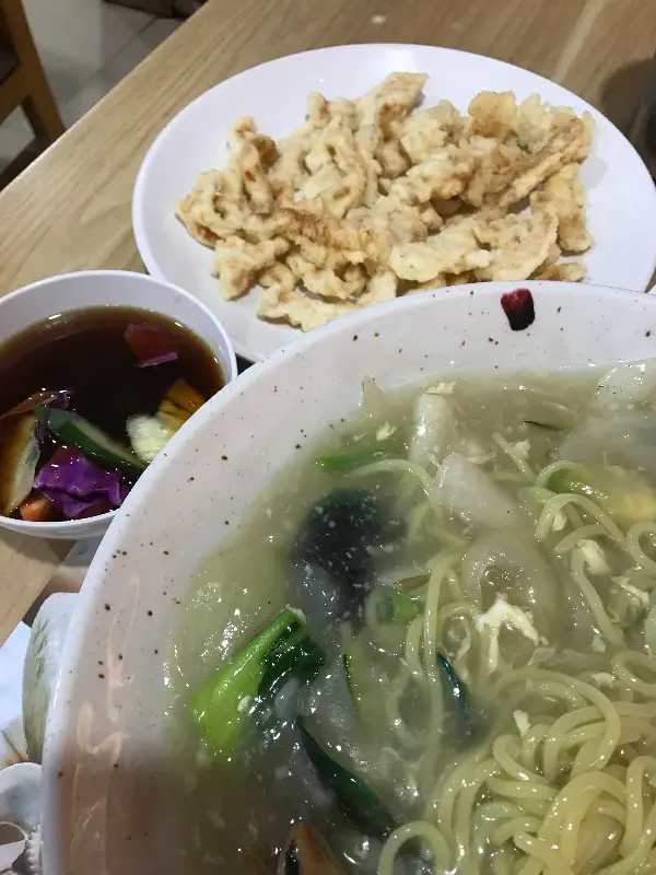 사진에서 보이는 짬뽕은 붉은 국물 속에 숨겨진 푸짐한 해산물 덕분에 시각적으로도 압도적이다. 탱글탱글한 새우, 쫄깃한 오징어, 시원한 맛을 더하는 홍합까지, 젓가락을 멈출 수 없게 만드는 비주얼이다. 짬뽕 국물은 보기만큼 맵지 않고, 은은한 불맛이 느껴져 더욱 깊은 풍미를 자랑한다. 한 입 맛보면 한국에서 먹던 짬뽕과는 또 다른 매력을 느낄 수 있다. 마치 인도네시아의 푸른 바다를 그대로 담아낸 듯한 시원함이 입안 가득 퍼진다. 면발은 탱글탱글하고 쫄깃하여, 짬뽕 국물과 환상적인 조화를 이룬다. 양 또한 푸짐하여, 곱빼기를 시키지 않아도 충분히 배부르게 즐길 수 있다. 특히 해산물을 좋아하는 사람이라면, Legend of Noodle의 짬뽕은 절대 놓쳐서는 안 될 메뉴다.