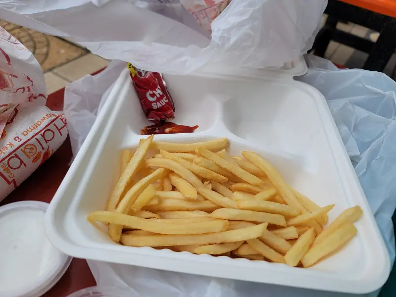 함께 주문한 감자튀김은 짭짤하면서도 바삭한 식감이 샤워마와 환상적인 조화를 이루었다. 특히, 시원한 맥주와 함께 먹으니 그 맛이 배가 되었다.