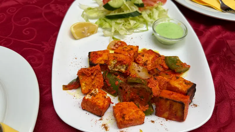 문을 열고 들어서자, 예상했던 대로 이국적인 향신료 향이 코를 간지럽혔다. 벽에는 화려한 색감의 인도풍 그림들이 걸려 있었고, 은은한 조명 아래 테이블들이 놓여 있었다. 첫인상은 따뜻하고 환영하는 분위기였다. 잠시 후, 친절한 직원의 안내를 받아 자리에 앉았다. 몇몇 리뷰에서는 내부가 덥고 음악 소리가 크다는 이야기도 있었지만, 다행히 방문했을 때는 적당한 온도와 음량으로 편안하게 식사를 즐길 수 있었다.