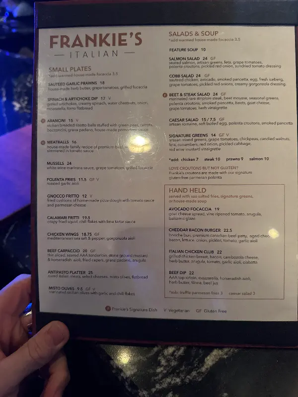 프랭키스의 음식 맛만큼이나 훌륭했던 것은 바로 서비스였습니다. 저희 테이블을 담당했던 웨이트리스 마일리(Miley)는 정말 친절하고 세심했습니다. 주문을 받는 동안 알레르기가 있는 아내를 위해 꼼꼼하게 확인해주었고, 음식에 대한 설명도 자세하게 해주었습니다. 음식이 나오는 속도도 적당했고, 식사하는 동안 불편함은 없는지 계속해서 확인해주는 모습에 감동했습니다. 열 명 정도의 단체 손님이었음에도 불구하고, 모든 요리를 완벽하게 조화롭게 담아주는 서비스는 정말 훌륭했습니다. 특히 멋진 와인 프로모션 덕분에 저녁 시간이 더욱 특별해졌습니다.