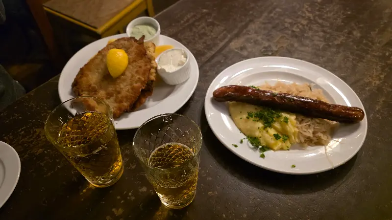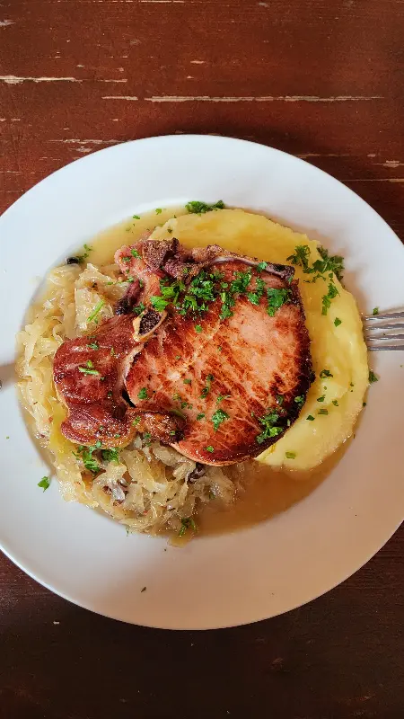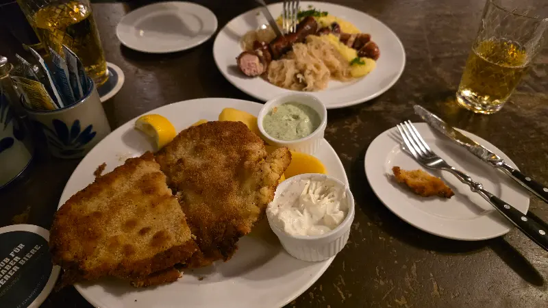 자리에 앉자, 종업원 분이 친절하게 메뉴판을 가져다주셨습니다. 메뉴는 독일 전통 음식을 중심으로 구성되어 있었고, 가격도 합리적이었습니다. 특히 포크 커틀릿이 유명하다고 하여, 망설임 없이 주문했습니다. 잠시 후, 주문한 음식이 나왔는데, 가격 대비 양이 정말 푸짐했습니다.