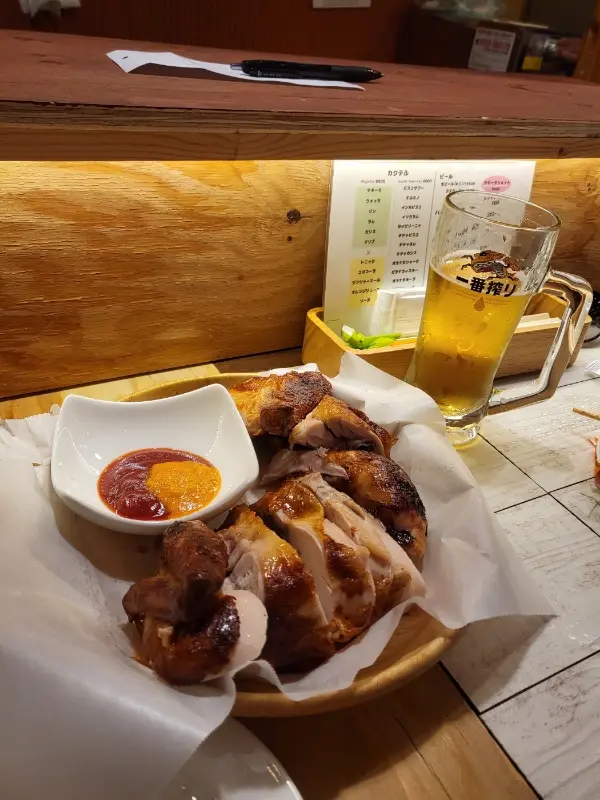 이곳의 대표 메뉴는 단연 닭구이입니다. 짭짤하면서도 감칠맛 넘치는 양념이 닭고기 깊숙이 배어 있어, 한 입 베어 무는 순간 입안 가득 풍미가 퍼져 나갑니다. 겉은 바삭하고 속은 촉촉한 완벽한 조화! 맥주를 절로 부르는 마성의 맛입니다. 갓 구워져 나온 따끈한 닭구이의 향긋한 풍미는 지친 하루의 피로를 말끔히 씻어주는 듯했습니다.