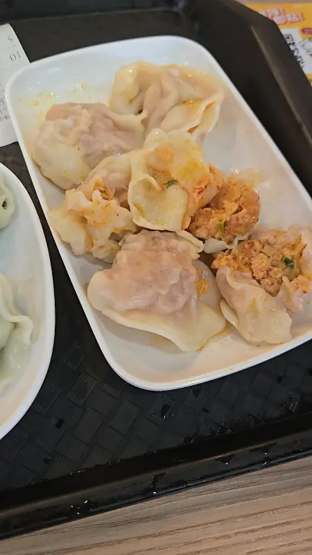 가장 먼저 눈에 들어온 것은 군만두였습니다. 노릇하게 구워진 겉면은 먹음직스러워 보였지만, 자세히 보니 몇몇 만두는 윗부분이 타 있었고, 아랫부분은 찢어져 속이 쏟아져 나와 있었습니다. 마치 숙련되지 않은 요리사의 실수처럼 느껴졌습니다. 겉은 바삭하고 속은 촉촉한 완벽한 군만두를 기대했지만, 현실은 조금 달랐습니다.