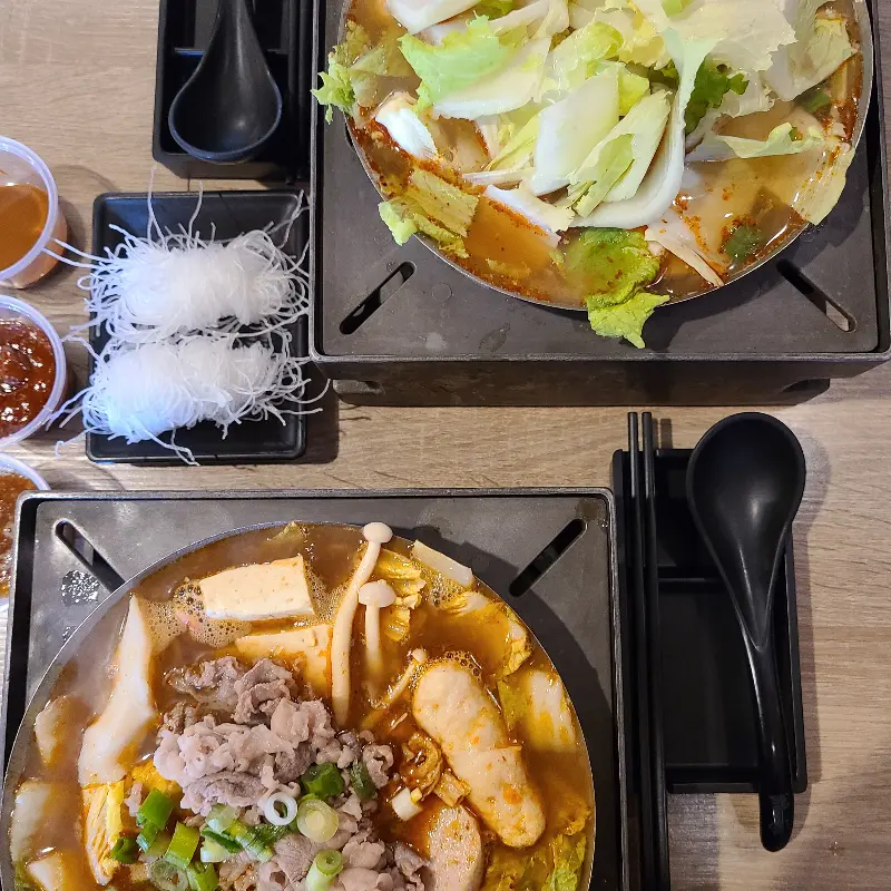 뚜껑을 열자, 푸짐한 양의 재료들이 시선을 사로잡았다. 하우스 스페셜에는 소고기, 두부, 버섯, 야채 등 다양한 재료들이 들어 있었고, 씨푸드 핫팟에는 새우, 오징어, 홍합 등 신선한 해산물이 가득했다. 국물을 한 입 맛보니, 하우스 스페셜은 독특한 향신료 향이 입안 가득 퍼지면서 이국적인 풍미를 자아냈다. 향신료를 즐기지 않는 사람에게는 다소 강하게 느껴질 수 있지만, 나는 그 오묘한 매력에 푹 빠져버렸다. 씨푸드 핫팟은 시원하고 깔끔한 국물 맛이 일품이었다. 해산물의 신선함이 그대로 느껴졌고, 먹으면 먹을수록 몸이 따뜻해지는 기분이었다.
