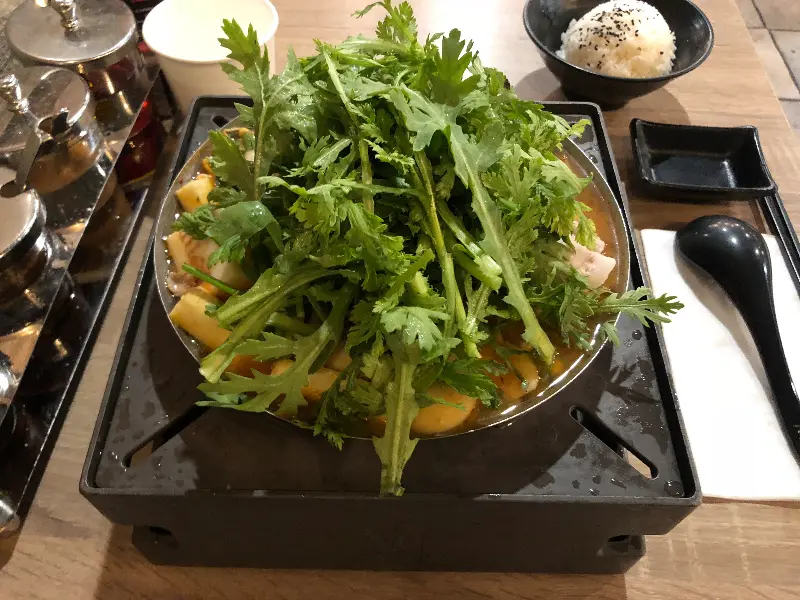 주문 후 잠시 기다리자, 테이블 위 버너에 핫팟이 올려졌다. 고체 연료가 타오르며 냄비를 데우기 시작했고, 냄새를 맡으니 벌써부터 몸이 따뜻해지는 기분이었다.