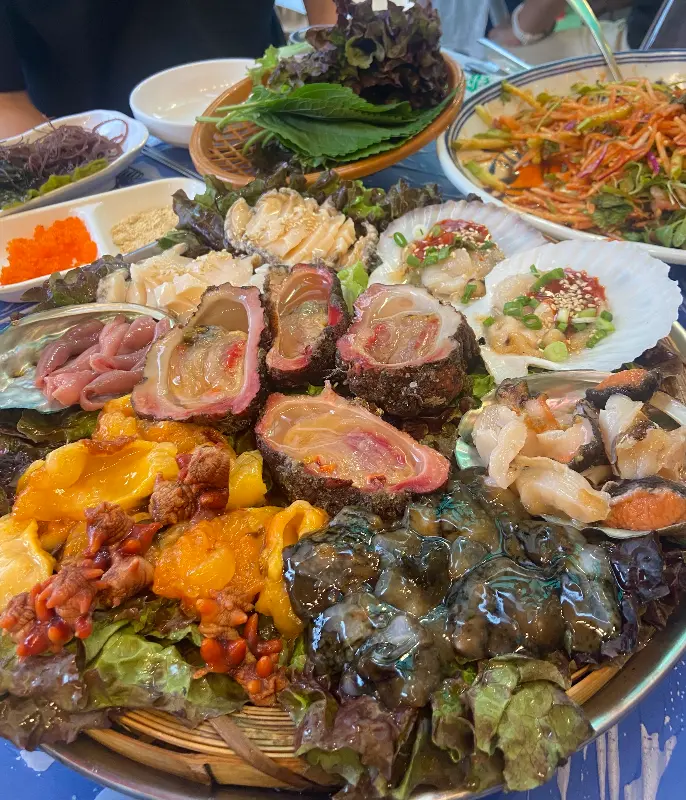 윤기가 자르르 흐르는 해산물들은 보기만 해도 신선함이 느껴졌다. 젓가락을 들어 멍게 한 점을 집어 입에 넣으니, 쌉싸름하면서도 시원한 바다 향이 입 안 가득 퍼져 나갔다. 꼬들꼬들한 해삼은 씹을수록 고소했고, 쫄깃한 전복은 담백하면서도 깊은 풍미를 자랑했다.