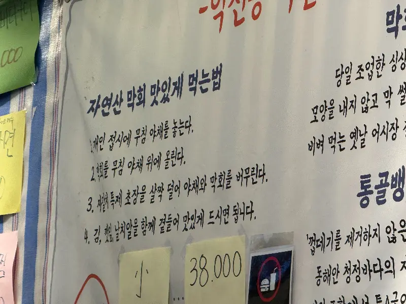 다음에 방문하면 꼭 물회를 먹어봐야겠다는 다짐을 했다. 다른 테이블에서 물회를 먹는 모습을 보니, 새콤달콤한 양념에 버무려진 해산물과 채소가 너무나 먹음직스러워 보였다. 탕에 면을 추가해서 먹는 것도 좋을 것 같았다.