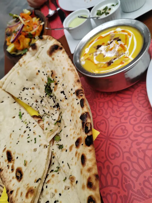 갓 구워져 나온 따끈한 난은 그 자체로도 훌륭하지만, 커리와 함께 먹으면 더욱 풍성한 맛을 느낄 수 있습니다.