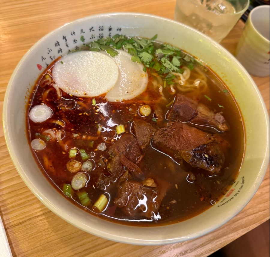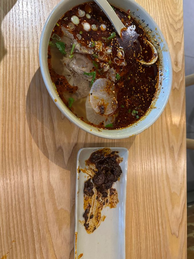국물 한 스푼을 뜨자, 붉게 빛나는 고추기름 사이로 맑은 육수가 살짝 비치고, 잘게 썬 파와 무, 고수가 어우러져 시각적으로도 풍성함을 더한다. 매운 것을 좋아한다면 혀끝을 강렬하게 자극하는 이 국수가 잊을 수 없는 경험을 선사할 것이다. 다만, 고수를 싫어하는 이들은 주문 시 미리 고수를 빼달라고 요청하는 것이 좋다. 메뉴에 재료가 명시되어 있지 않아 예상치 못하게 고수를 만나 아쉬워하는 고객도 있었다.