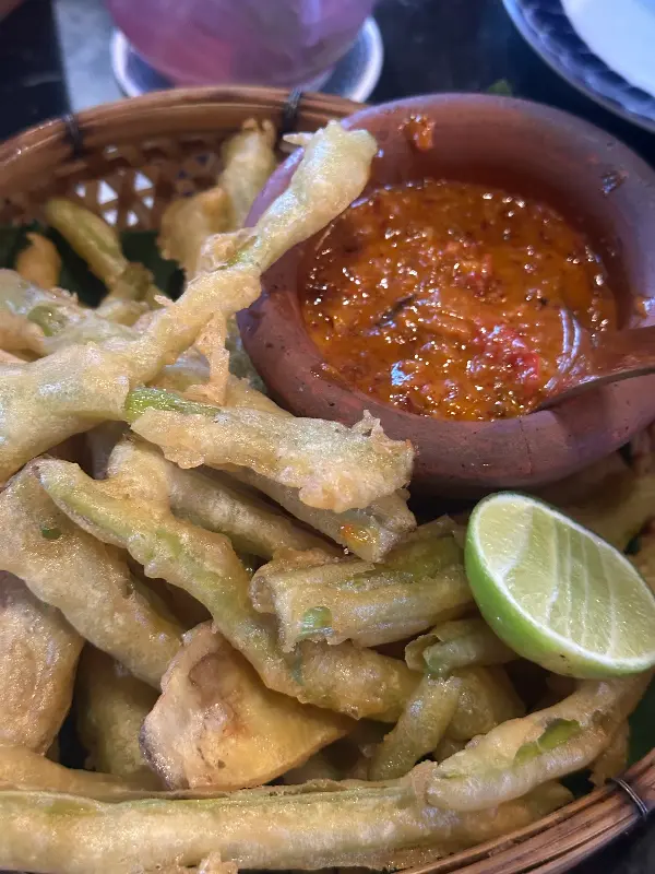 가장 먼저 등장한 것은 모닝글로리 튀김이었다. 바삭하게 튀겨진 모닝글로리는 겉은 바삭하고 속은 촉촉했다. 함께 제공된 소스에 찍어 먹으니, 고소하면서도 짭짤한 맛이 입 안 가득 퍼졌다. 평소에 즐겨 먹던 모닝글로리 볶음과는 전혀 다른 매력이었다. 덴뿌라처럼 튀겨져 나오니, 더욱 고급스러운 느낌이었다. 다만 양이 너무 많아서 둘이서 다 먹기에는 조금 버거웠다.