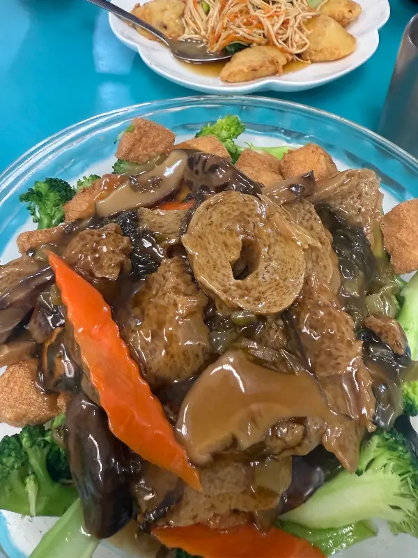 Lucky Creation에서는 다채로운 채식 요리를 맛볼 수 있습니다. 신선한 채소와 풍부한 소스의 조화가 일품입니다.