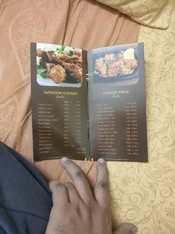 메뉴판을 펼치니, 붉게 물든 탄두리 치킨과 윤기가 흐르는 치킨 티카가 시선을 사로잡았다. 향긋한 향신료 내음이 코 끝을 간지럽히는 듯했다.