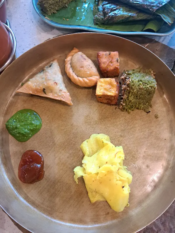 이어서 등장한 파르산 플래터는 팔락 사모사, 도클라, 패티스 등 다양한 구자라트 스낵을 한 번에 맛볼 수 있는 특별한 메뉴였습니다. 특히 팔락 사모사는 바삭한 겉면과 촉촉한 속이 환상적인 조화를 이루었고, 도클라는 부드러운 식감과 은은한 단맛이 일품이었습니다. 각 스낵은 고유의 맛과 향을 지니고 있어, 질릴 틈 없이 다양한 풍미를 경험할 수 있었습니다.