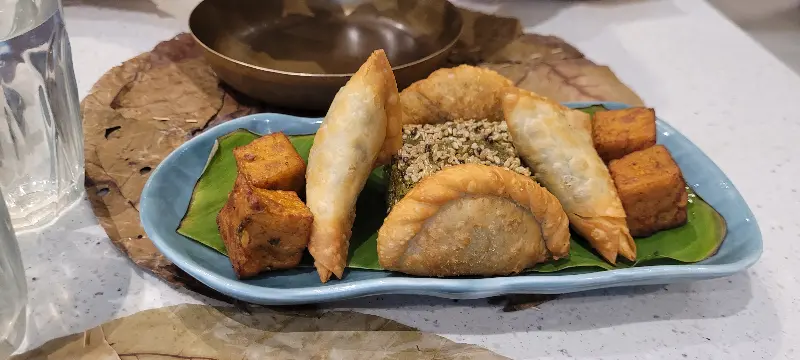 메뉴를 펼쳐 들자, 난생 처음 보는 구자라트 음식들이 눈길을 사로잡았습니다. 망설임 끝에 직원분의 추천을 받아 판키와 파르산 플래터, 조와르 피타 포켓을 주문했습니다. 잠시 후, 김이 모락모락 나는 판키가 등장했습니다. 섬세하게 구워진 얇은 피는 입에 넣는 순간 사르르 녹아내렸고, 은은한 향신료 향이 입안 가득 퍼져 나갔습니다. 뜨거운 김이 식기 전에 한 입 베어 무니, 그 부드러움에 감탄사가 절로 나왔습니다.