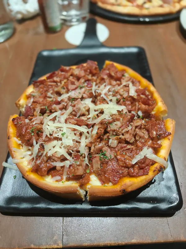 The Cage Mocking Bird에서 가장 인기 있는 메뉴는 단연 피자와 새우튀김입니다. 특히 스톤 오븐에서 구워 낸 피자는 얇고 바삭한 도우와 신선한 토핑이 어우러져 환상적인 맛을 자랑합니다. 저는 스톤 오븐 가든 프레시 베지 피자와 시카고 스타일 미트 파이를 주문했습니다. 베지 피자는 야채와 치즈가 듬뿍 들어가 있어 풍성한 맛을 느낄 수 있었고, 미트 파이는 베이컨과 페퍼로니가 듬뿍 들어가 있어 짭짤하면서도 고소한 맛이 일품이었습니다. 다만, 피자 소스가 조금 달다는 평이 있었지만, 전체적으로 훌륭한 맛 덕분에 크게 거슬리지는 않았습니다.