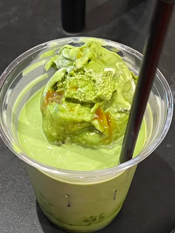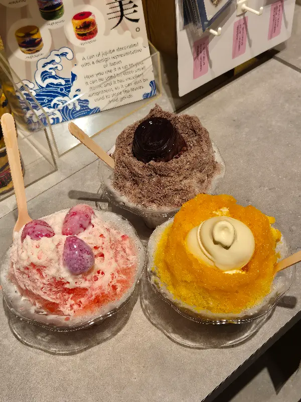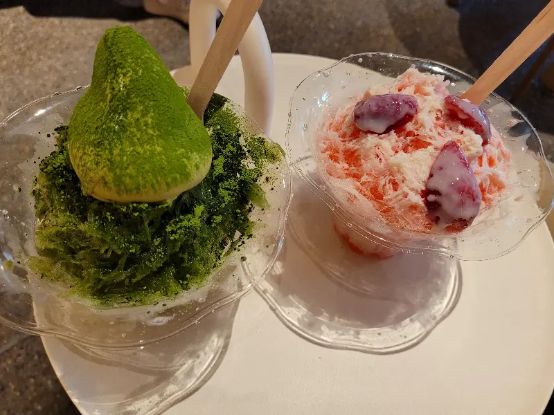 잠시 후, 드디어 기다리던 말차 빙수가 나왔다. 곱게 갈린 얼음 위에 듬뿍 올려진 말차 아이스크림과 달콤한 팥, 그리고 쫀득한 떡까지. 보기만 해도 군침이 돌았다. 첫 입을 입에 넣는 순간, 쌉싸름하면서도 달콤한 말차의 풍미가 입 안 가득 퍼져 나갔다.