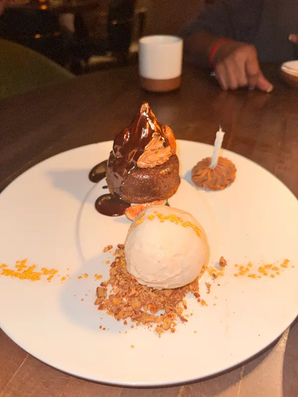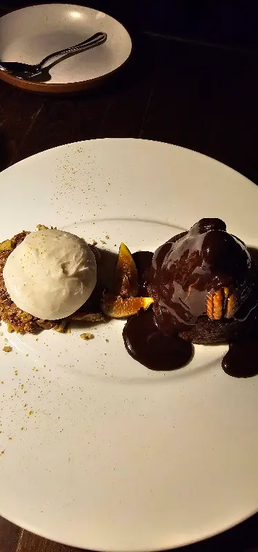 마지막으로, 대추 케이크 디저트를 주문했다. 따뜻하게 구워진 대추 케이크 위에 달콤한 소스가 뿌려져 있었고, 그 위에는 아이스크림 한 스쿱이 올려져 있었다. 대추의 은은한 단맛과 소스의 달콤함, 아이스크림의 시원함이 어우러져 입 안 가득 행복을 선사했다.