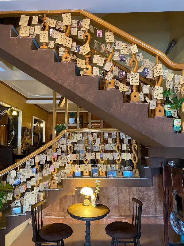 벽에는 사파 소수민족과 역사에 대한 사진 자료들이 전시되어 있어 마치 작은 박물관에 온 듯한 느낌도 들었다. 사파의 역사와 문화를 엿볼 수 있는 흥미로운 공간이었다. 특히 계단 난간에 빼곡하게 붙어있는 메모들은 방문객들의 애정을 고스란히 담고 있는 듯했다.