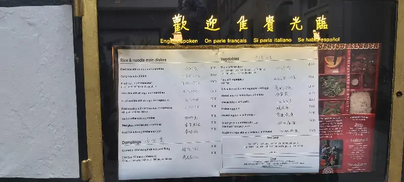 가게 앞에 놓인 메뉴판을 살펴보니 다양한 홍콩 요리들이 준비되어 있었습니다. 딤섬부터 시작해, 볶음 요리, 면 요리 등 다채로운 메뉴 구성은 선택 장애를 불러일으키기에 충분했습니다. 메뉴판은 영어, 독일어, 프랑스어, 이탈리아어 등으로 번역되어 있어 외국인 손님들을 배려한 점이 돋보입니다.