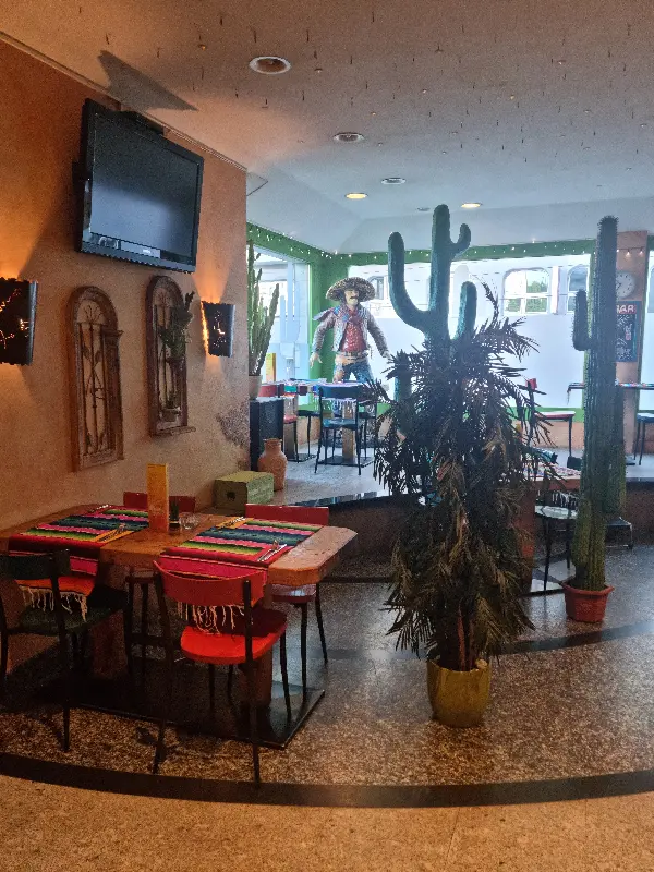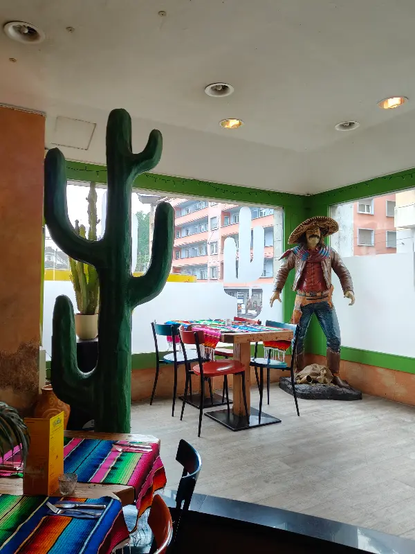 레스토랑 문을 열자, 예상했던 대로 활기 넘치는 분위기가 우리를 맞이했다. 멕시코를 상징하는 선인장 조형물과 강렬한 색감의 테이블보가 눈에 띄었고, 천장에는 기타가 걸려 있어 자유로운 분위기를 더했다. 나무로 마감된 인테리어는 아늑하면서도 이국적인 느낌을 주었다. 마치 멕시코의 어느 작은 마을에 와 있는 듯한 기분이었다.