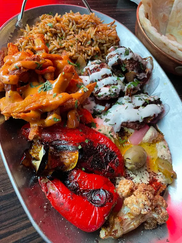 함께 주문한 투북 플레이트는 시각적으로도 훌륭했습니다. 구운 야채와 쾨프테, 밥 등이 조화롭게 담겨 있었는데, 각각의 재료가 신선하고 맛있었습니다. 특히, 닭고기는 촉촉하고 부드러웠으며, 함께 제공된 소스와의 조합은 훌륭했습니다.
