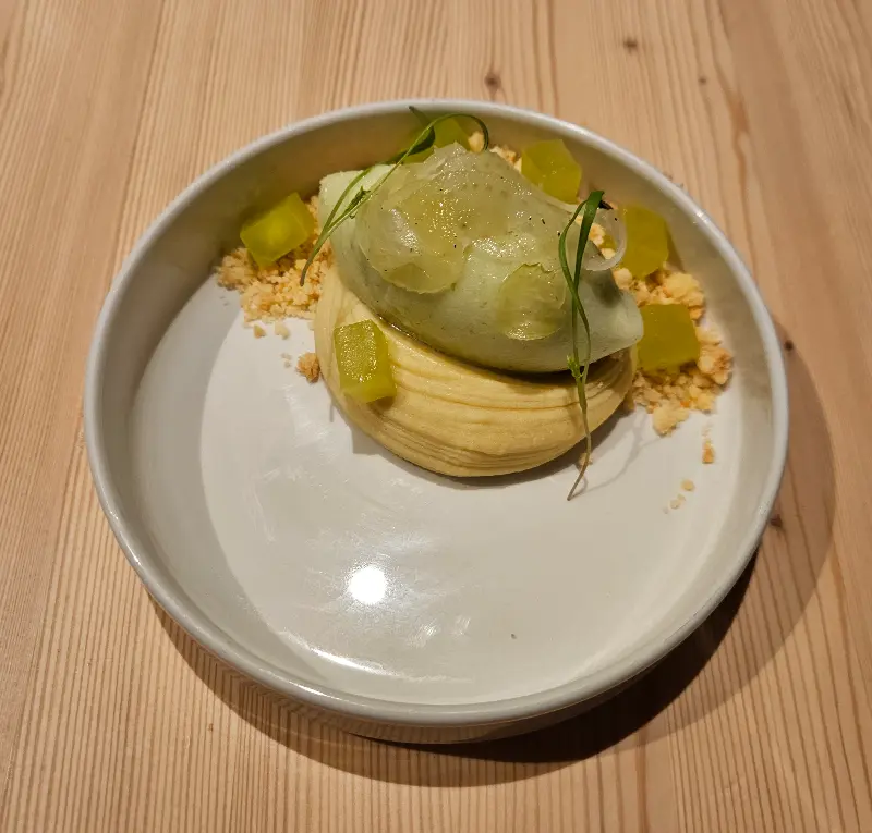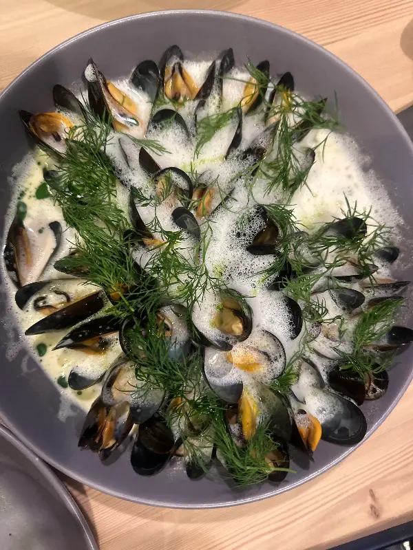 Frisk Fisk에서의 식사는 신선한 해산물과 독특한 노르딕 풍미가 어우러진 하나의 예술 작품과 같습니다. 빵부터 시작되는 섬세한 터치는 입 안 가득 행복을 선사합니다. 폭신폭신한 빵에 부드러운 휘핑크림 버터를 발라 먹는 순간, 단순한 음식을 넘어 미식의 세계로 초대받은 듯한 느낌을 받습니다.