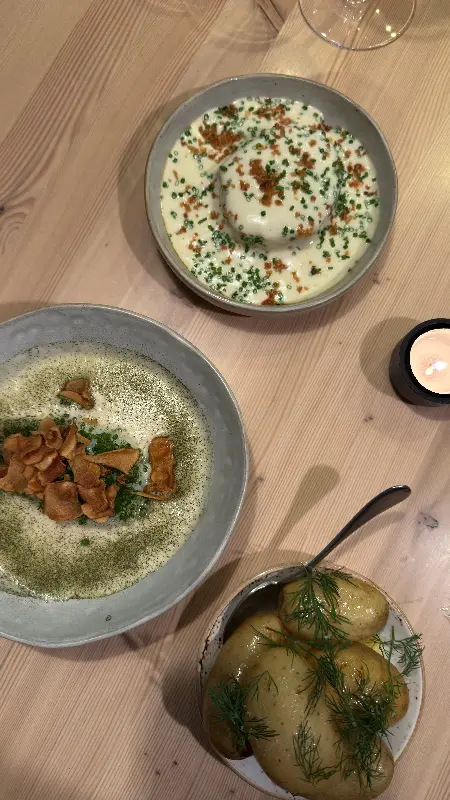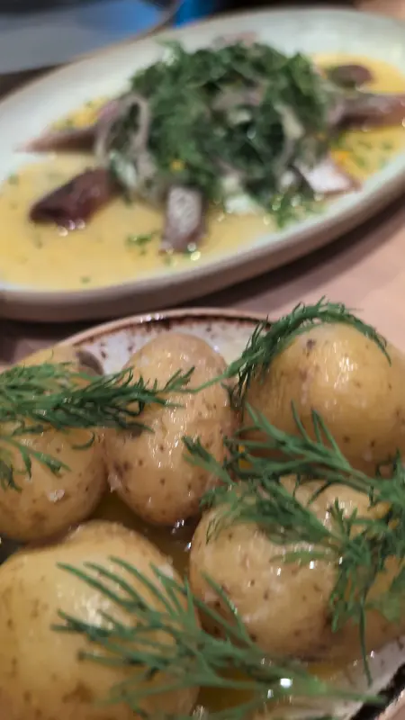 버터 소스를 곁들인 청어는 예상치 못한 조합이지만, 놀라운 맛을 선사합니다. 모든 요리에는 노르웨이 특유의 풍미가 완벽하게 어우러져 있어, 마치 노르웨이로 짧은 미식 여행을 떠나온 듯한 기분을 느낄 수 있습니다.