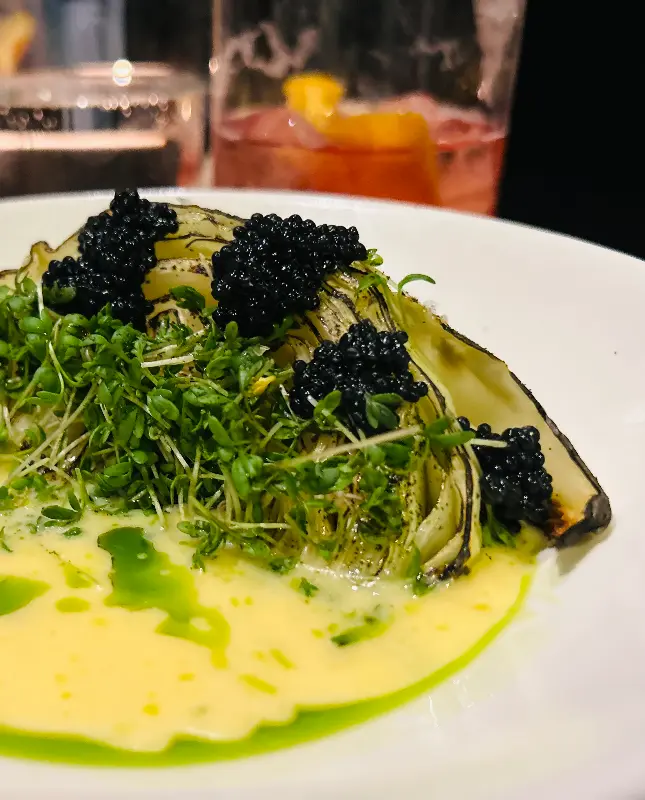 Frisk Fisk의 요리들은 단순한 음식을 넘어 시각적인 아름다움까지 선사합니다. 연어 타르타르는 기발한 플레이팅과 풍성한 캐비어 토핑으로 눈길을 사로잡습니다. 윤기가 흐르는 연어 위에 섬세하게 올려진 캐비어는 마치 보석처럼 빛나며, 한 입 베어 물면 입 안 가득 퍼지는 풍미가 감탄을 자아냅니다.