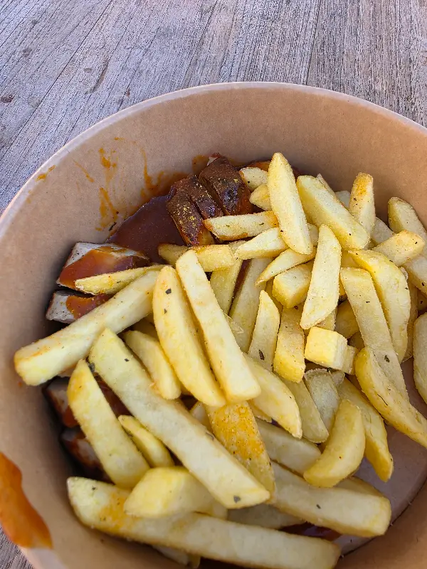 리비에라 스낵바에서는 부어스트 외에도 다양한 곁들임 메뉴를 즐길 수 있습니다. 그중에서도 제가 가장 좋아하는 것은 바로 감자튀김입니다. 바삭하게 튀겨진 감자튀김은 짭짤하면서도 고소한 맛이 일품입니다. 특히 부어스트와 함께 먹으면 환상의 궁합을 자랑합니다.