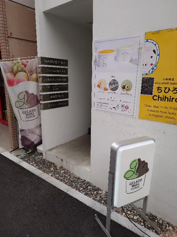 츠키지 역에서 내려, 사람들로 북적이는 거리를 지나쳐 조금만 안쪽으로 들어가면, 아담한 크기의 ‘젤라또 미키’가 눈에 들어옵니다. 간판이 크지 않아 무심코 지나칠 수도 있지만, 작은 입간판이 친절하게 길을 안내합니다. 마치 보물찾기처럼, 예상치 못한 장소에서 발견하는 기쁨이 있습니다.