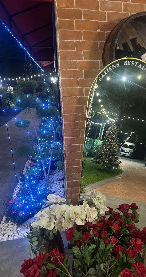 사피엔스는 마치 숨겨진 보석처럼, 구글 지도를 켜고 찾아가지 않으면 쉽게 발견하기 힘든 곳에 자리 잡고 있습니다. 하지만 어렵게 찾아간 만큼, 그 보상은 확실하죠. 레스토랑 입구에 들어서는 순간, 화려한 조명과 싱그러운 식물들이 조화롭게 어우러진 아름다운 공간이 눈 앞에 펼쳐집니다. 붉은 벽돌 벽에 빛나는 “Sapiens” 네온사인은 따뜻하고 매혹적인 분위기를 자아내며, 마치 다른 세계로 들어온 듯한 설렘을 안겨줍니다.