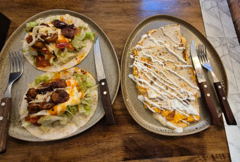 타코는 부드러운 또띠아 위에 신선한 채소와 고기, 소스가 듬뿍 올려져 있었다. 한 입 베어 무니, 입안 가득 퍼지는 풍미가 황홀경을 선사했다. 특히, 불향이 은은하게 느껴지는 고기는 타코의 맛을 한층 더 끌어올렸다. 퀘사디아는 쫄깃한 식감과 고소한 치즈의 조화가 일품이었다.