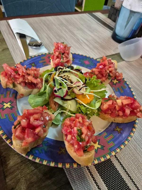 바삭한 빵 위에 신선한 토마토를 얹은 브루스게타. 상큼한 맛이 입맛을 돋운다.