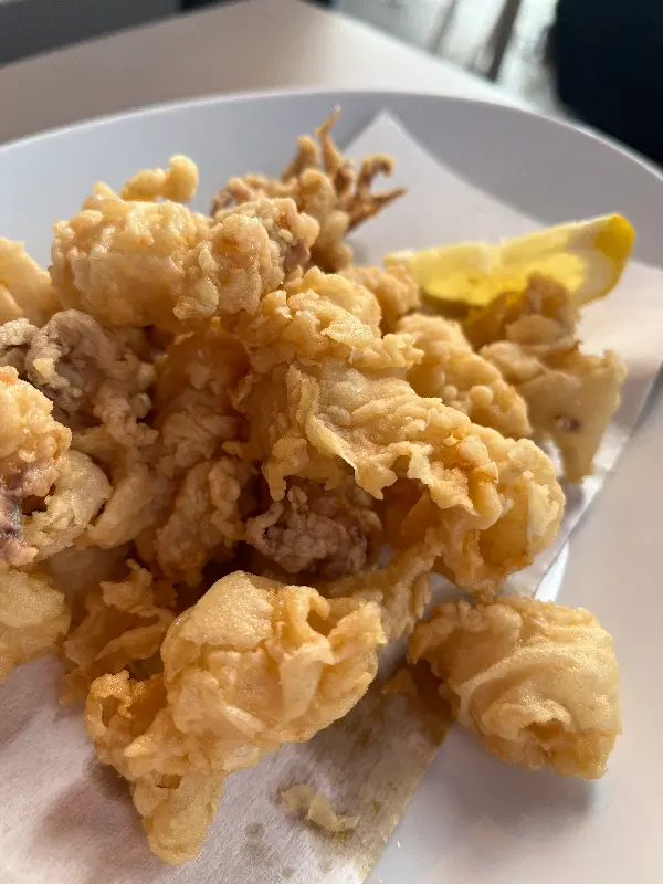 테이크 아웃 창구에서 우연히 맛본 오징어튀김은 레스토랑에서 먹었던 것과는 전혀 달랐다. 겉은 바삭하고 속은 촉촉했으며, 부드럽고 달콤한 맛이 입안 가득 퍼졌다. 마치 인생 최고의 오징어튀김을 맛본 것 같았다. 친퀘테레에 다시 간다면 매일 밤 테이크 아웃 창구에서 오징어튀김을 사 먹을 것 같다.
