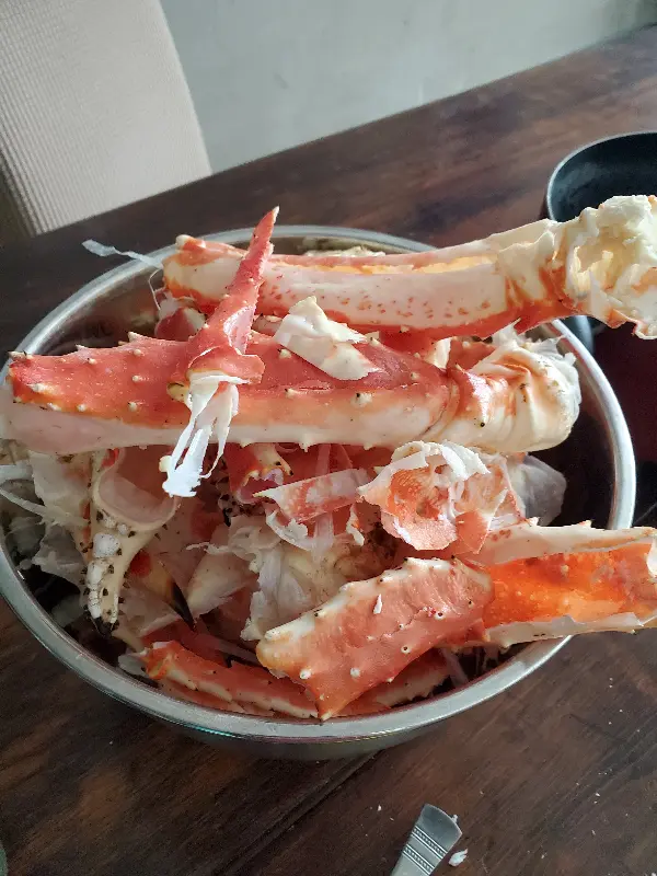 녹인 버터를 살짝 찍어 먹으니, 킹크랩의 풍미가 더욱 깊어졌다. 버터 없이 그냥 먹어도 충분히 맛있었지만, 버터의 고소함이 더해지니 그 맛은 더욱 특별해졌다. 킹크랩을 먹는 동안, 나는 세상에서 가장 행복한 사람이 된 기분이었다.