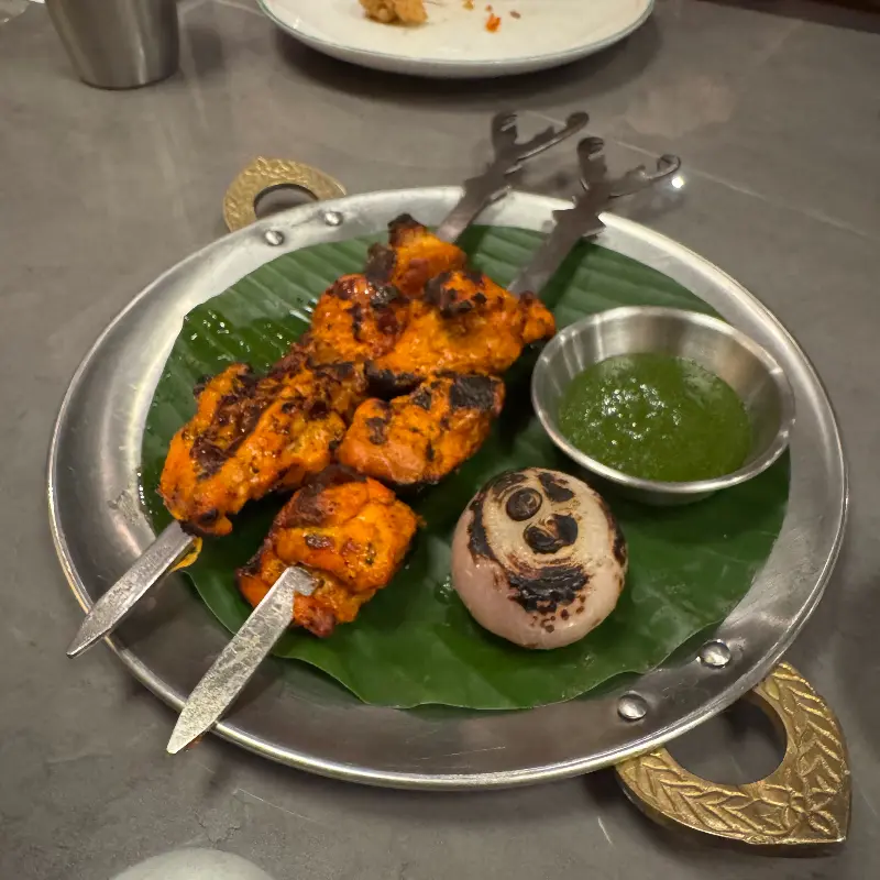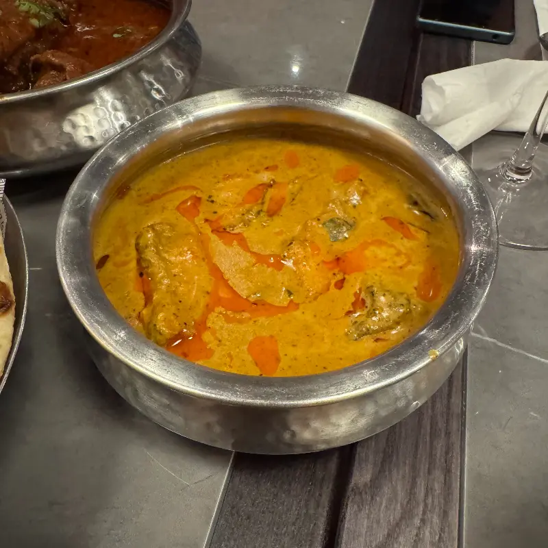 식사 중간에 마신 망고 라씨는 상큼하고 시원했습니다. 진한 망고의 풍미와 요거트의 부드러움이 어우러져, 입안을 깔끔하게 정리해 주는 느낌이었습니다. 마지막으로 맛본 디저트는 달콤하고 부드러웠습니다. 은은한 단맛과 향긋한 과일 향이 입안 가득 퍼져 나가, 기분 좋은 마무리를 선사했습니다.