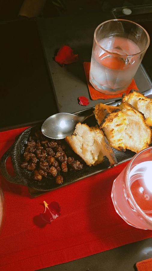 메인 요리인 스테이크만큼이나 애피타이저와 사이드 메뉴 또한 미식 경험을 풍성하게 만듭니다. 웨이터 이수루 씨의 추천을 받아 고른 애피타이저인 구운 새우, 빵, 그리고 소고기 크래클링은 입맛을 돋우기에 충분합니다. 바삭하면서도 고소한 소고기 크래클링은 메인 요리를 기다리는 동안 훌륭한 주전부리가 되어줍니다.