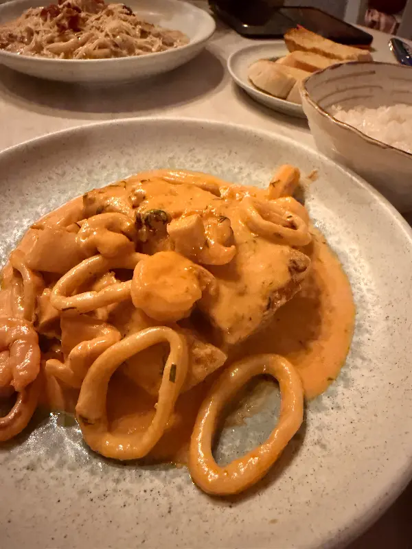 이어서 등장한 해산물 리조또는 또 다른 감동을 선사했다. 원래 토마토 소스 베이스로 제공되는 메뉴였지만, 크림 소스로 변경해달라는 나의 요청을 흔쾌히 받아주었다. 부드러운 크림 소스와 신선한 해산물의 조화는 정말이지 완벽했다. 풍미의 균형이 절묘했고, 진하면서도 섬세한 맛은 잊을 수 없을 것 같다.