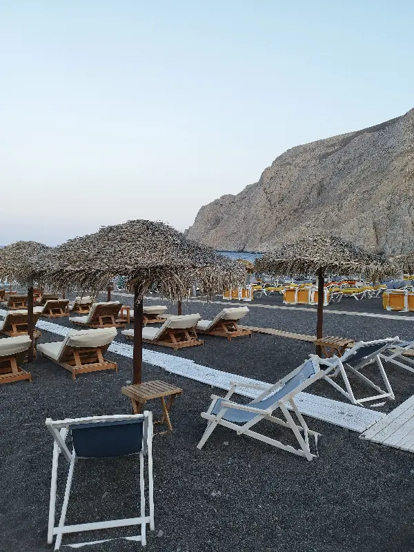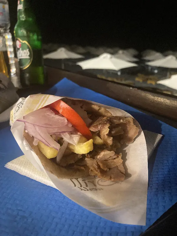 세 번째 방문 때는 간단하게 자이로를 테이크아웃해서 해변에서 먹었다. 검은 모래사장에 앉아 시원한 바닷바람을 맞으며 먹는 자이로는 그야말로 꿀맛이었다. 특히, Stop Souvlaki는 해변 바로 앞에 위치해 있어 테이크아웃하기에 최적의 장소였다. 바쁜 일정 속에서도 잠시 시간을 내어 해변에서 여유를 즐기며 맛있는 음식을 먹는 것은 산토리니 여행의 큰 즐거움이었다.