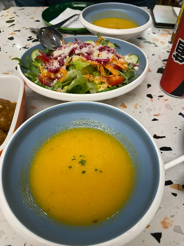 268달러에 수프 두 개, 샐러드, 피자, 디저트 두 개(아이스크림), 음료 두 잔이 포함된 세트 메뉴는 정말 훌륭한 선택이었습니다. 고급 샐러드는 신선한 야채와 드레싱의 조화가 완벽했고, 버섯 크림수프는 부드럽고 깊은 풍미가 일품이었습니다.