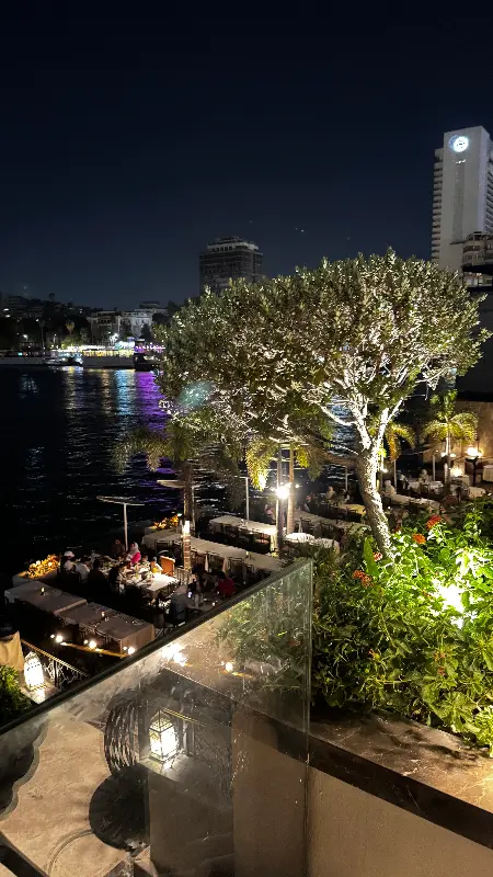 아쿠아 루프탑 라운지에 들어서는 순간, 탄성이 절로 나왔습니다. 눈 앞에 펼쳐진 나일강의 야경은 그야말로 장관이었죠. 강물에 비치는 도시의 불빛은 마치 수많은 보석들이 흩뿌려진 듯 아름다웠습니다. 은은하게 빛나는 조명 아래 놓인 테이블들은 저마다 특별한 순간을 기념하려는 사람들로 북적였습니다.